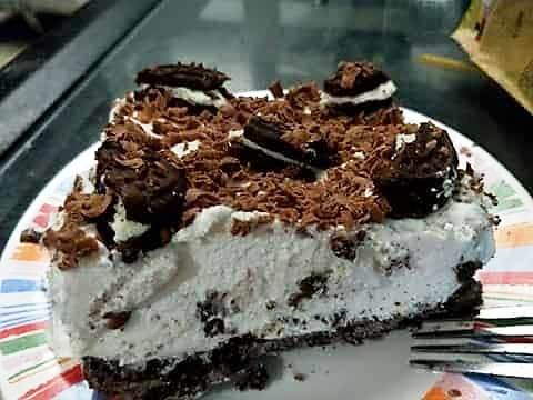 Ριχνουμε σε ενα μπολ τα 600γρ .κρεμα γαλακτος την χτυπαμε μεχρι να γινει μια μαλακή σαντιγί προσθέτουμε το υπολοιπο μας ζαχαρουχο και το ξαναχτυπαμε ριχνουμε μεσα τα 8 μπισκοτα τα σπασμένα τα ανακατεύουμε παλι και ριχνουμε μεσα κομματακια απο την μιση lacta σοκολατα .