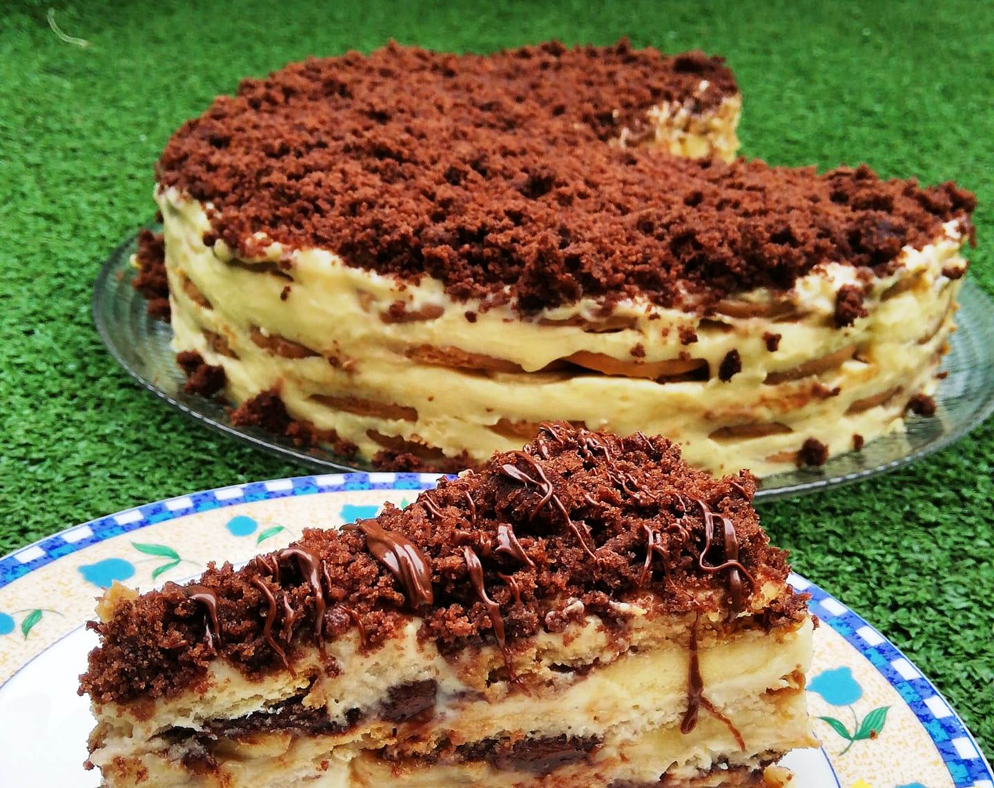 Φυλάσσετε στο ψυγείο για λίγες ώρες. Το έφτιαξα το βράδυ. Τέλος, είχα ένα υπολοιπο απο κεικ σοκολάτας και έτριψα σε τριμματα σε ένα μπλεντερ και στόλισα απο πάνω. Μπορείτε να αντικαταστήσετε με μπισκότα σοκολάτας τριμμένα.