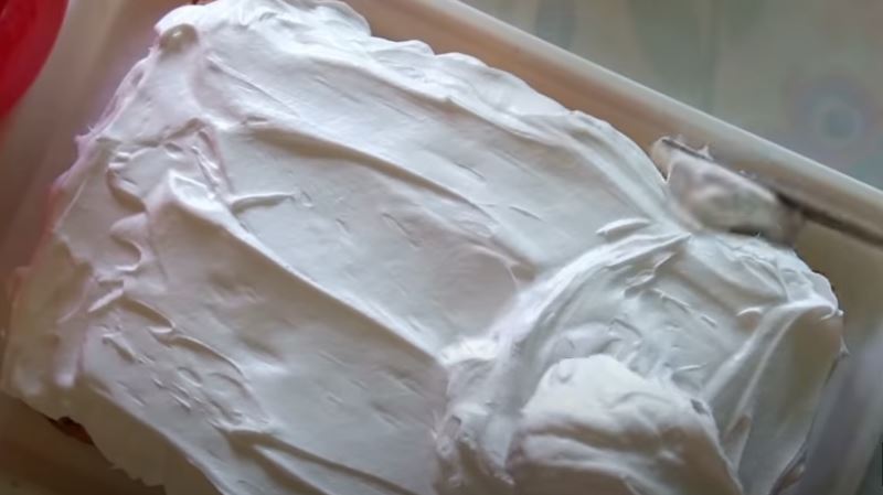 Απλώνουμε την σαντιγί πανω από τα μπισκότα και γύρω γύρω