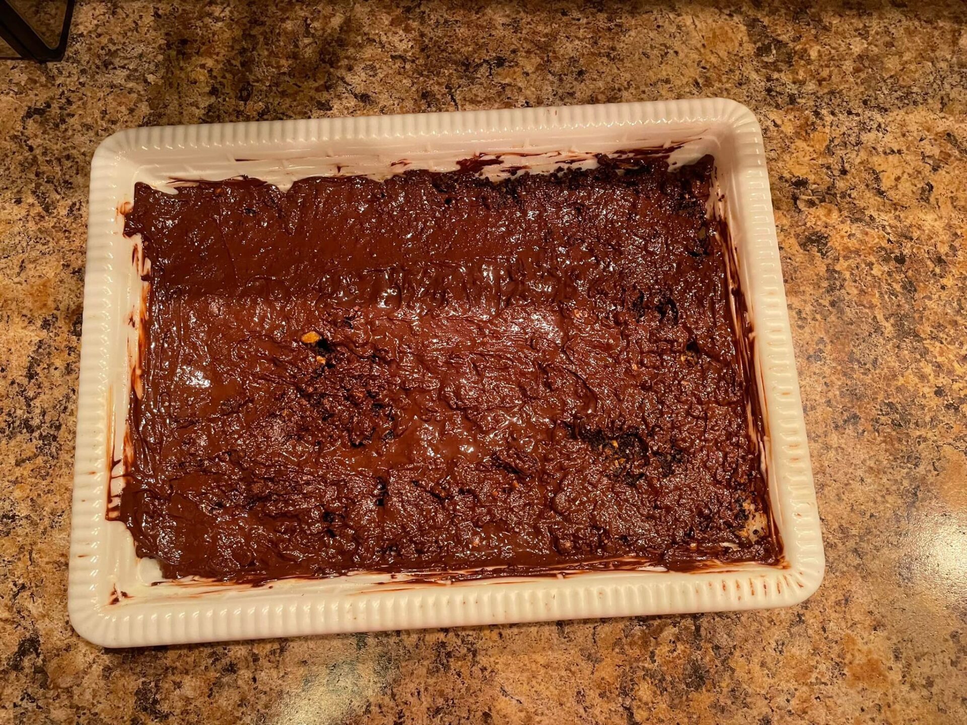 Στη συνέχεια ρίξτε το πάνω από την βάση και απλώστε το ομοιόμορφα.