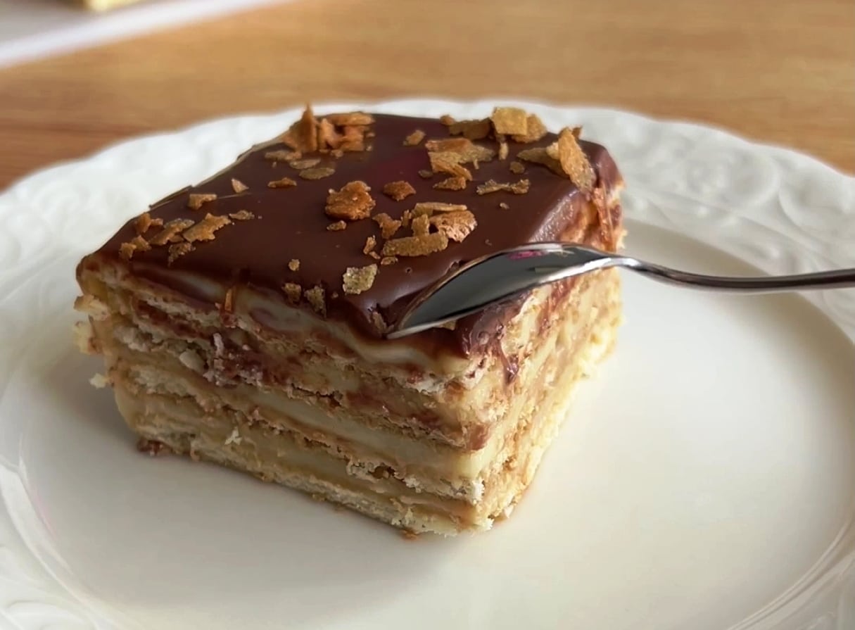 Ανακαλύψτε πώς να φτιάξετε ένα ακαταμάχητο μπισκοτογλυκό χωρίς ψήσιμο. με χειροποίητη κρέμα. και γλάσο σοκολάτας Μια εύκολη συνταγή που θυμίζει τιραμισού. και είναι ιδανική για το γιορτινό τραπέζι σας