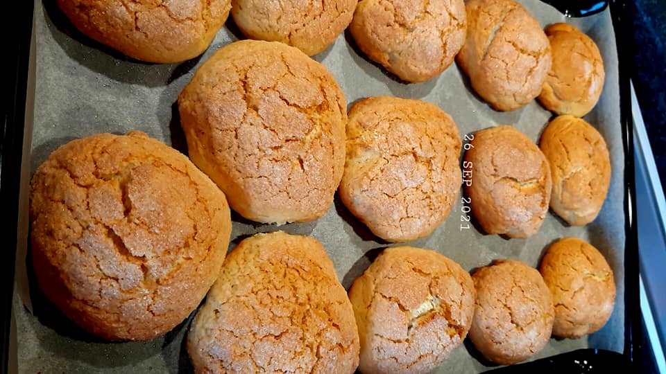 τις τακτοποίησα σε ένα δίσκο με χαρτί ψησίματος, πασπάλισα με ζάχαρη και ψήθηκαν