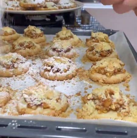 Φτιάξτε τα πιο αφράτα μπισκότα μήλου με κανέλα και γέμιση από καρύδια. Αυτή η συνταγή είναι διάσημη για την πλούσια γεύση της, την τραγανή κρούστα ψίχουλου και το ζουμερό, αρωματικό εσωτερικό της. Ιδανικά για τον καφέ ή το τσάι, γίνονται περίπου 36 κομμάτια!