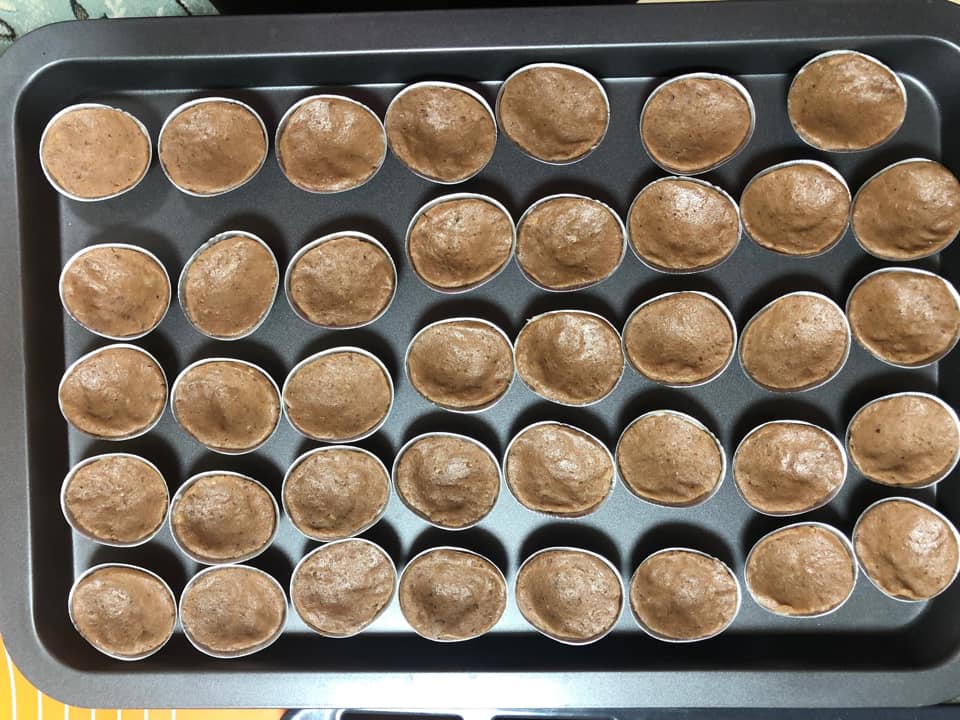 και τα βάζουμε σε φορμάκια ή σε λαδόκολα με αποσταση μεταξυ τους και τα πιεζουμε ελαφρώς. Ψήνουμε στους 180 βαθμούς, περ. 10-13 λεπτά.