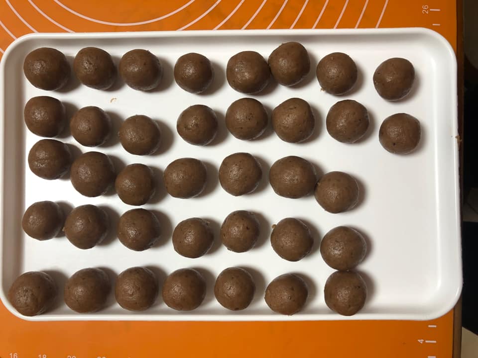 Από τη ζύμη σχηματίζουμε μπαλάκια σε μέγεθος καρυδιού