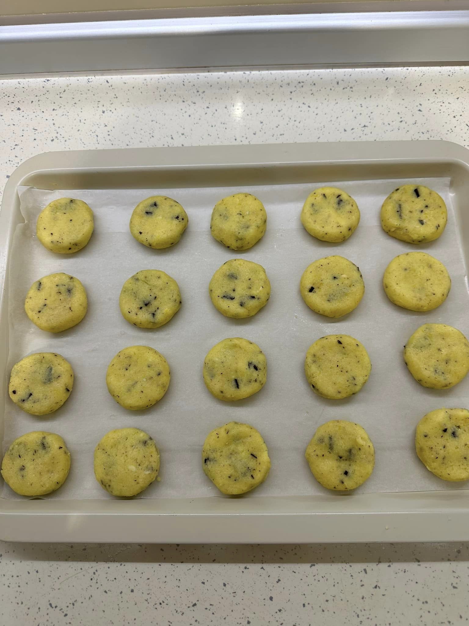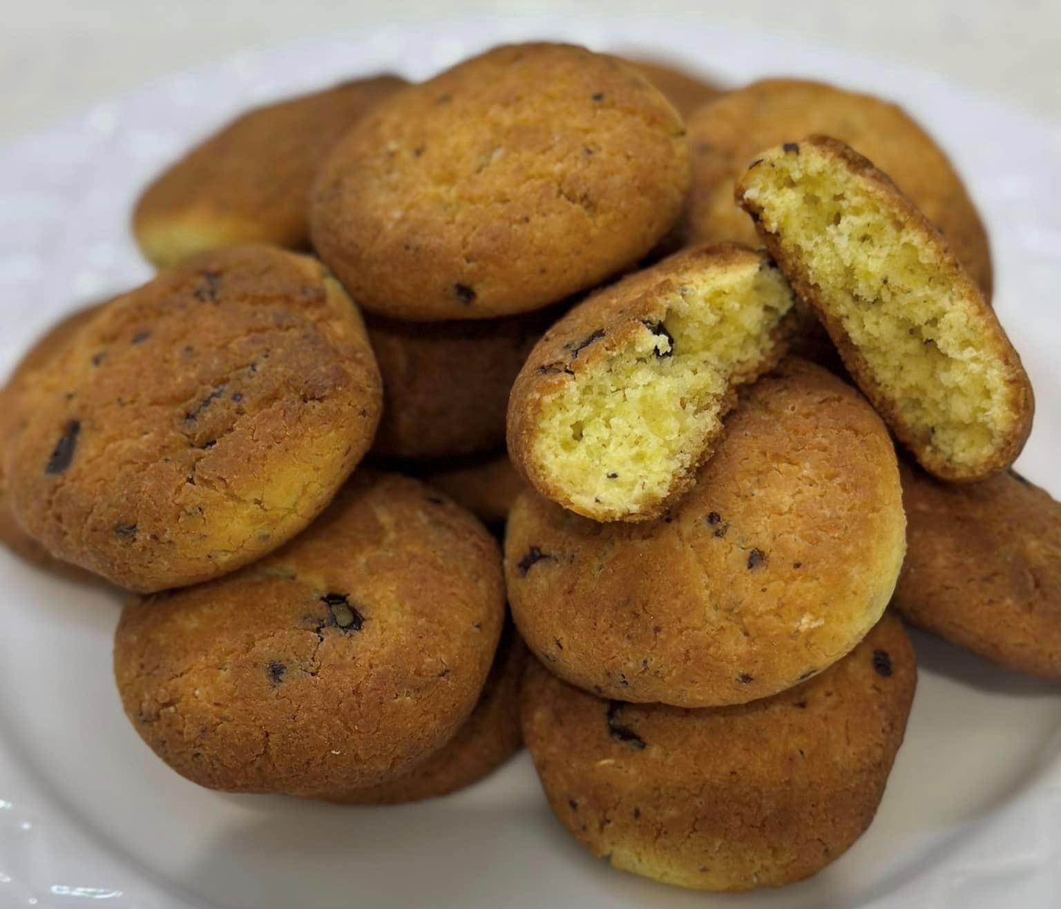 Πλάθουμε με τα χέρια μας μπαλάκια και τα τοποθετούμε σε ταψί στρωμένο με λαδόκολλα. Ελαφρώς τα πατάμε. (Πήρα 20 τμχ. 25 γρ το καθένα).