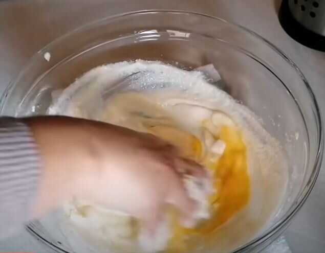 Μόλις γίνει σαν κρέμα προσθέτω και το αυγό και συνεχίζω να ανακατεύω με το χέρι.
