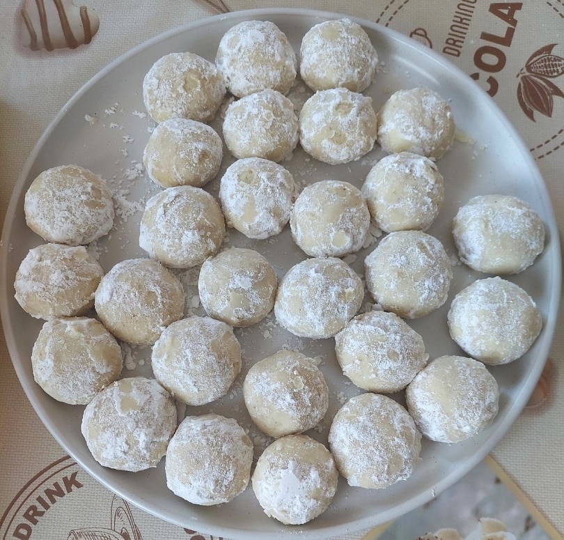 Αφού βγάλεις τα μπισκότα από τον φούρνο και κρυώσουν ελαφρώς, ρολαρετε σε άφθονη ζάχαρη άχνη.