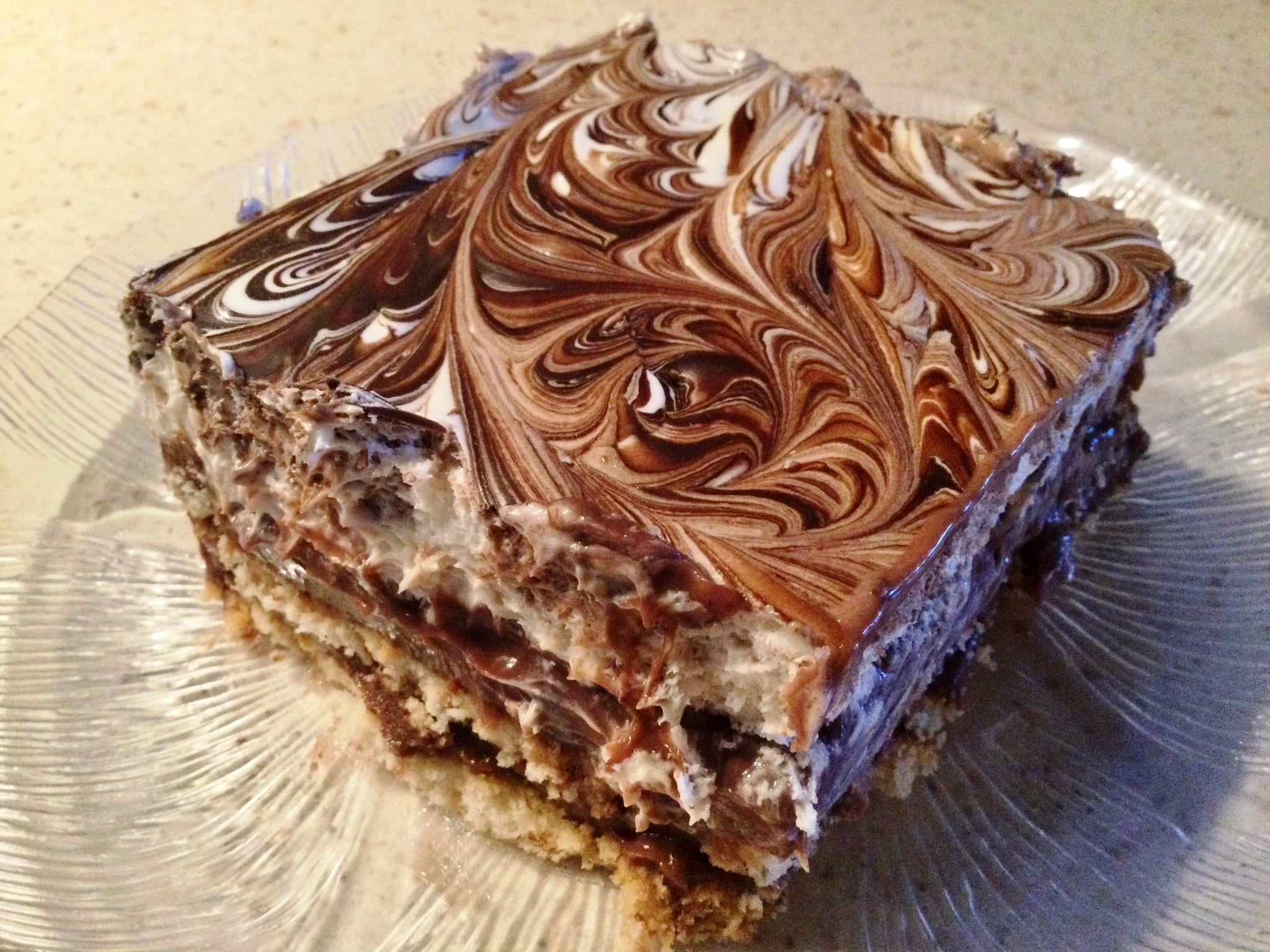 Έβαλα μια στρώση πτι Μπερ μια σοκολάτα πάλι πτι Μπερ πάλι σοκολάτα, πτι Μπερ σοκολάτα και πάλι πτι Μπερ.