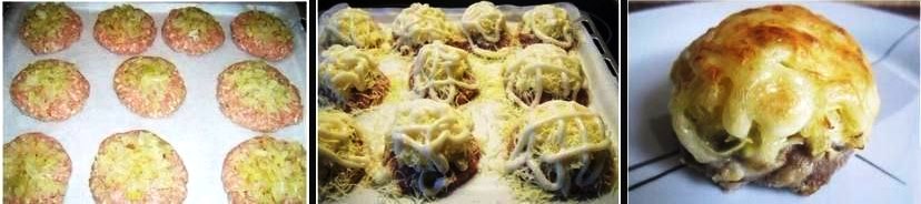 Παίρνουμε μεγάλη ποσότητα στα χέρια μας από τον κιμά φτιάχνουμε ένα μπιφτέκι (διαμέτρου 10 εκ.)και κανουμε μια μικρη λακουβιτσα στο κεντρο