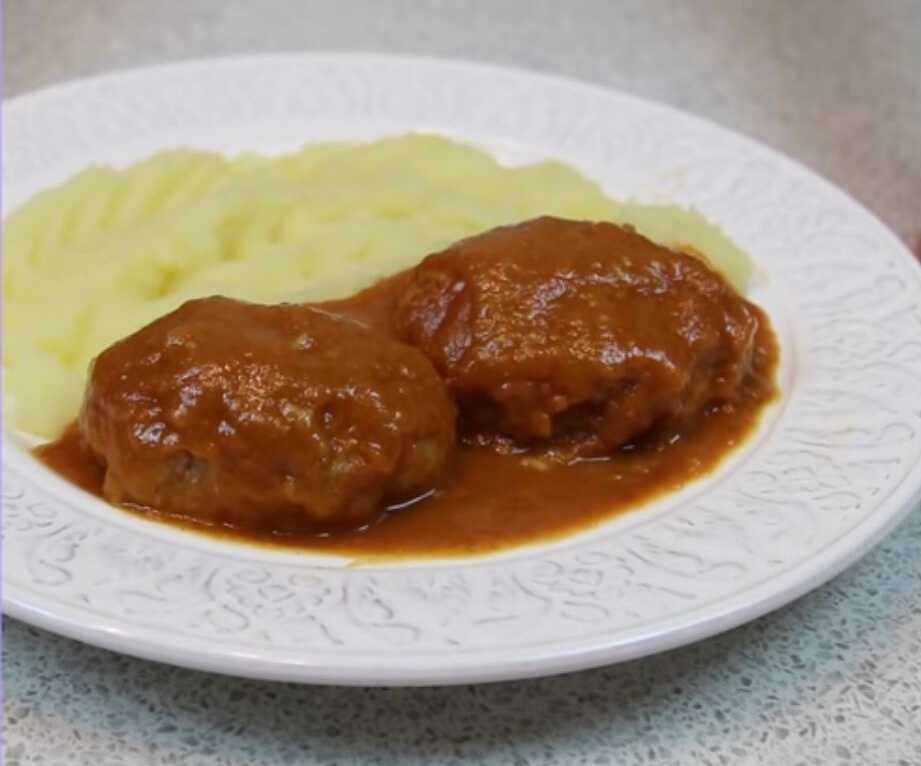 Μπιφτέκια με κόκκινη σάλτσα και πουρέ