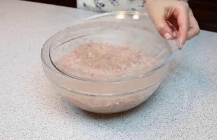 τον κιμά με βρεγμένα χέρια, κτυπήστε επιπλέον τον κιμά, συμπιέστε το στα χέρια,