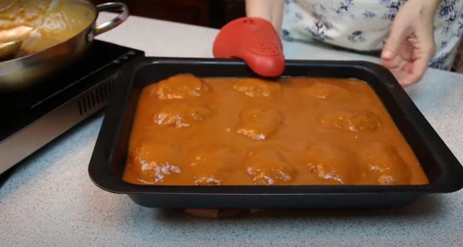 τα αφήσω όλα όπως είναι. Βράζουμε τη σάλτσα, βγάζουμε το ταψί από το φούρνο και
