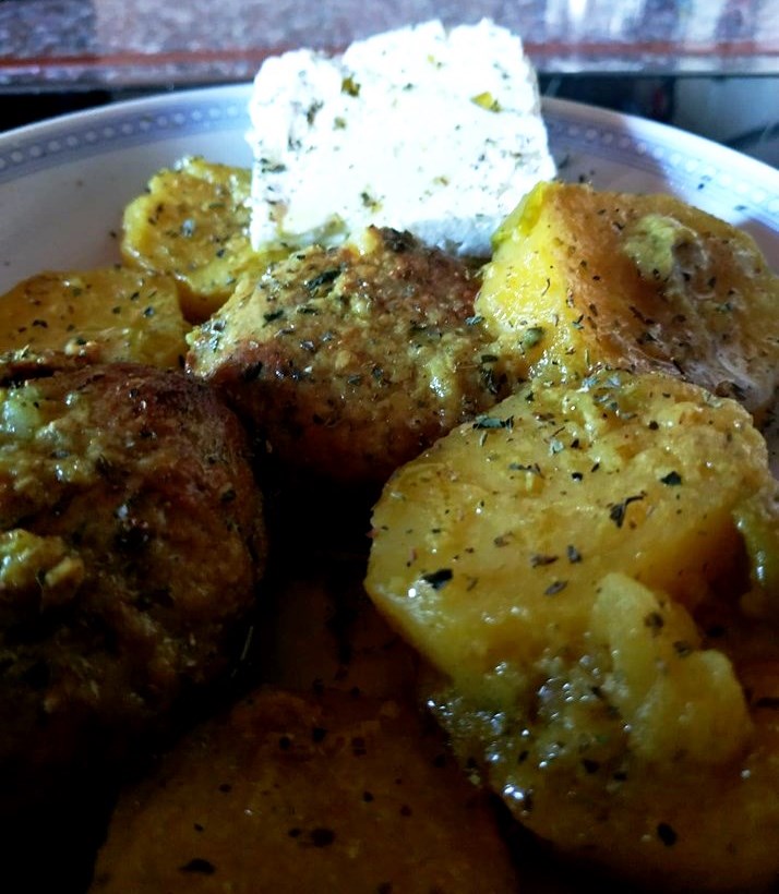 Αφράτα μπιφτέκια με πατάτες στο φούρνο και φέτα