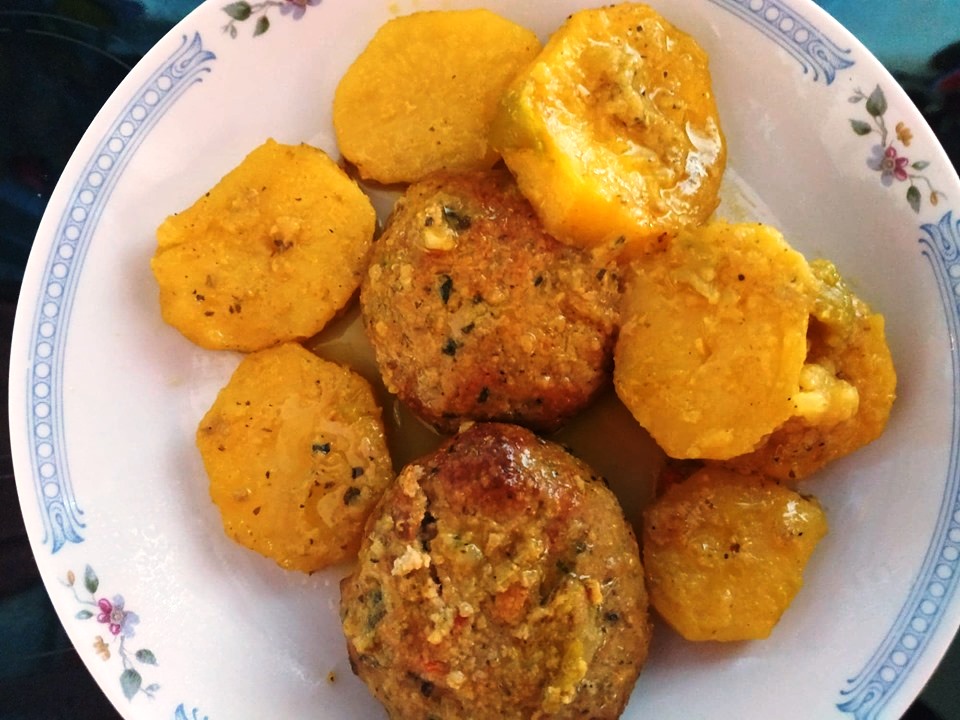 Σε ένα μπολ βάζω τις πατάτες στρόγγυλες κομμένες, τα μπαχαρικά.