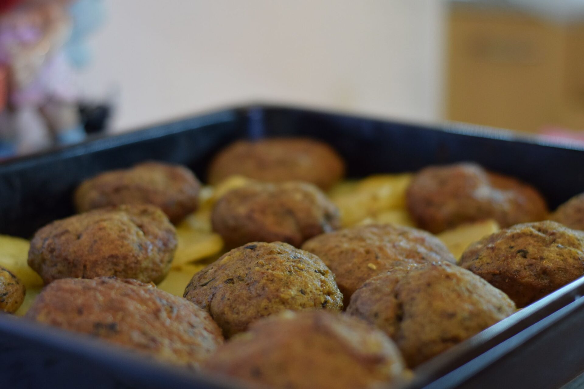 Πάρτε κομμάτια του μείγματος (περίπου 160 γραμμάρια) το καθένα και διαμορφώστε σε μια στρογγυλή μπάλα.