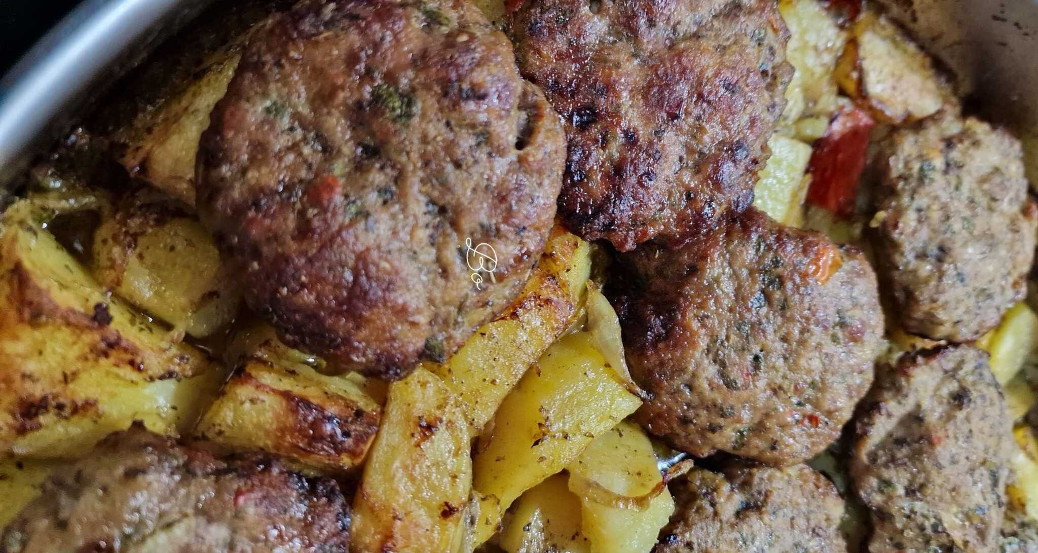 (Μισό κιλό μοσχαρίσιο κιμά kai μισό χοιρινό , 4-5 φέτες ψωμί τοστ (στεγνές) στο μουλτι , λαδάκι ρίγανη αλάτι πιπέρι, μπόλικο μαϊντανό,