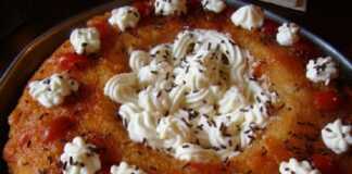 Βάζουμε την τούρτα στο ψυγείο για τουλάχιστον 2 ώρες πριν την σερβίρουμε.