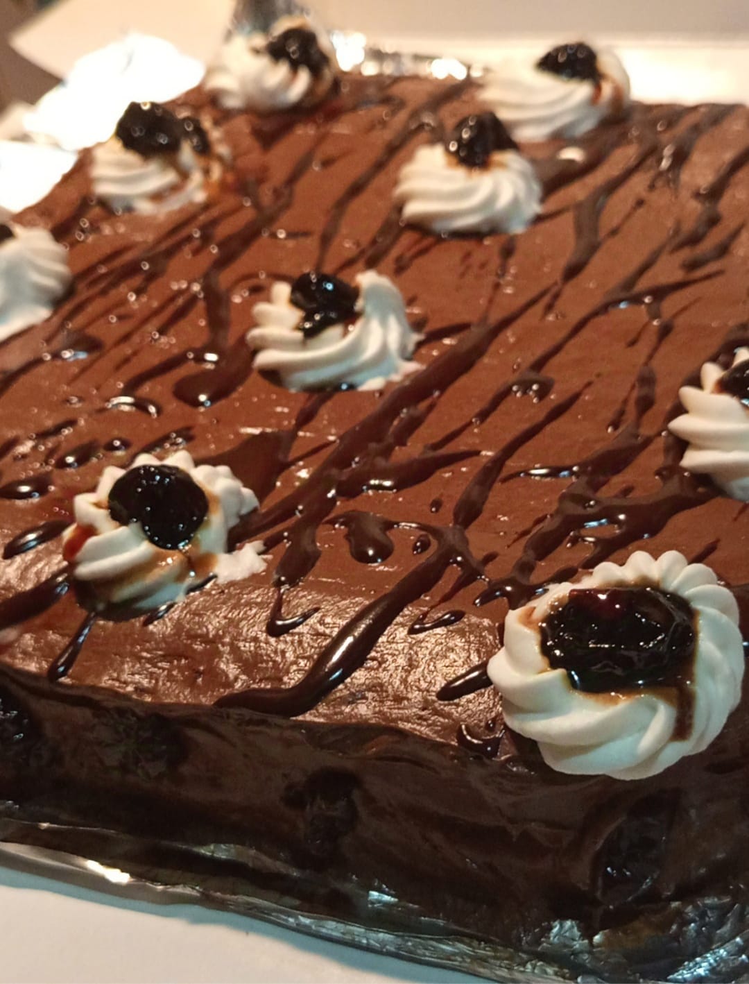 Γαρνίρετε με κουβερτούρα και βύσσινα.