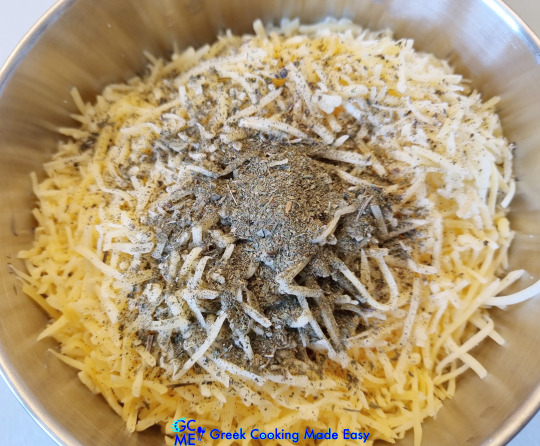 2. Τρίψτε το ελληνικό τυρί με τα δάχτυλά σας και τοποθετήστε το σε ένα μεγάλο μπολ.