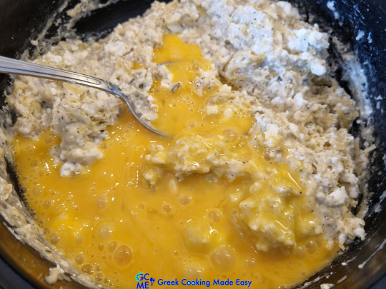 6. Ανακατέψτε καλά τα τυριά με ένα μεγάλο κουτάλι.
