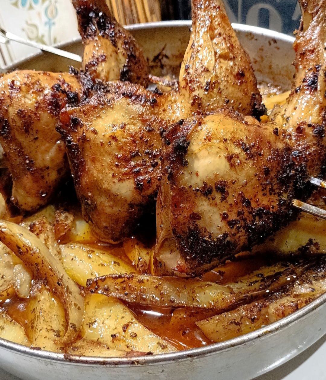 Ψήνω στους 170 β.αέρα,κάτω σχάρα για μία ώρα κι ένα τέταρτο περίπου γυρνώντας 1-2 φορές τα μπούτια για να ροδίσουν απ’ όλες τις πλευρές!!!