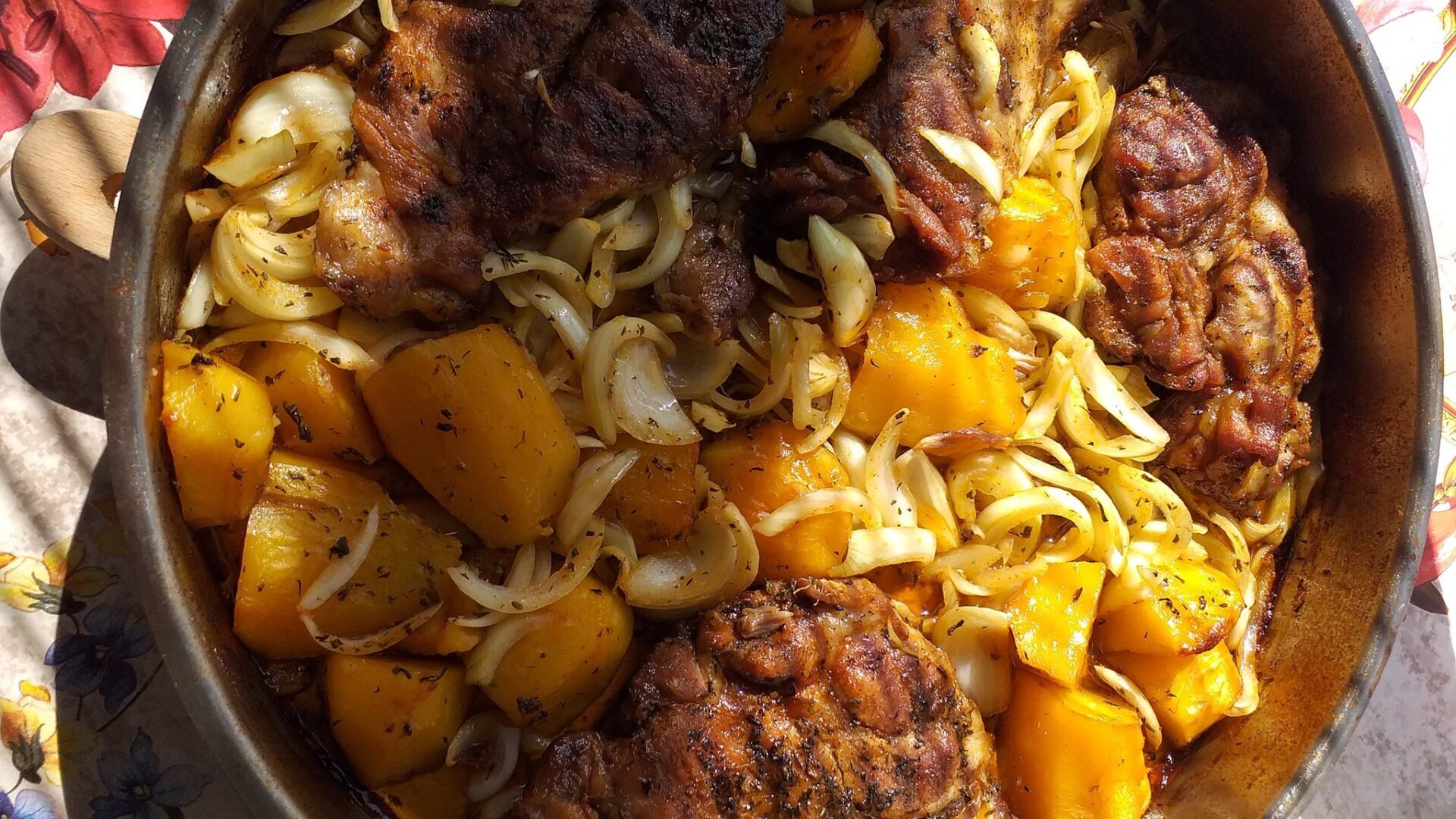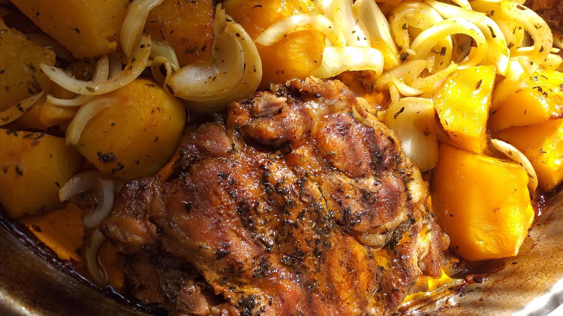Μπριζόλες λαιμού με πατάτες και κρεμμύδι!
