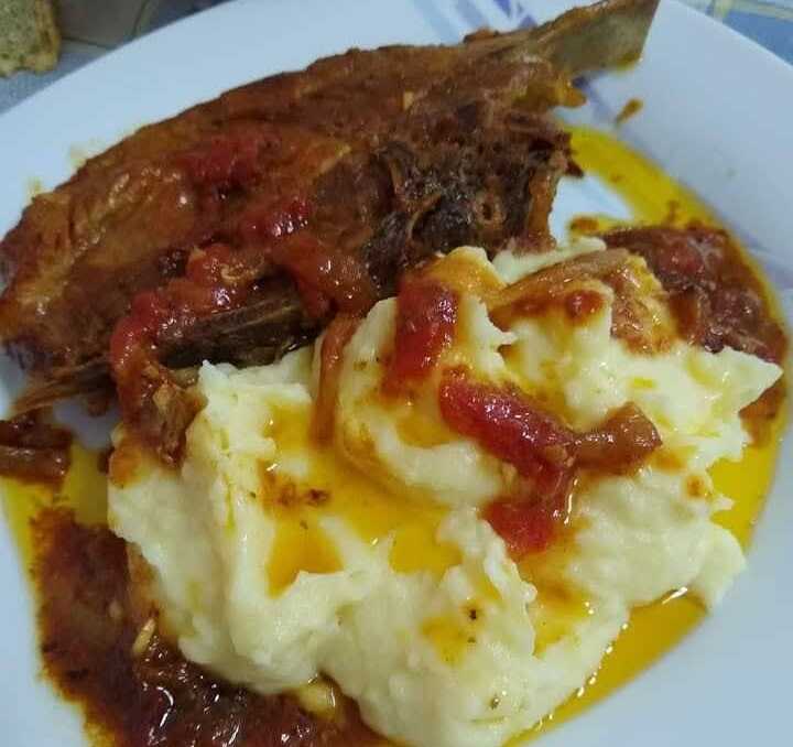 Μπριζόλες στη γάστρα με πουρέ