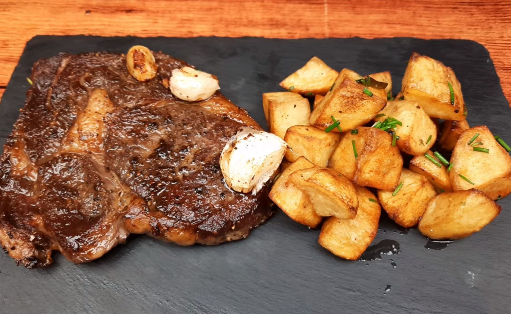Μπριζόλες στο τηγάνι με πατάτες φουρνου