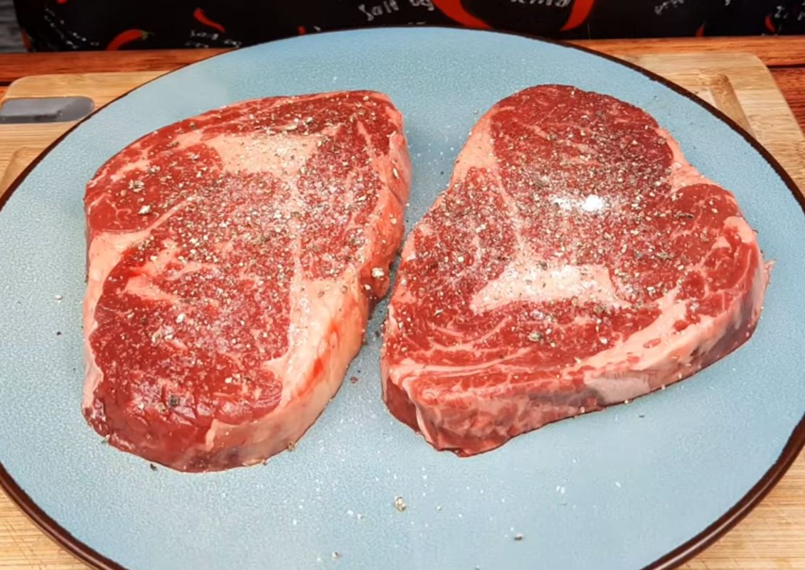Ξεκινάμε και αλατοπιπερώνουμε τις μπριζόλες και απο τις πλευρες και τις αφήνουμε λίγο να τραβήξουν το αλάτι.