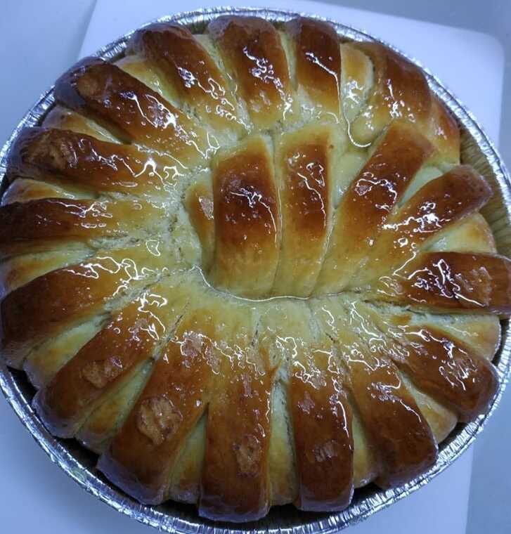 Αλείφουμε μόνο με ασπράδι και το βάζουμε στο φούρνο σκεπασμένο με λαδόκολλα και ψήνουμε 180 αντιστάσεις 30 λεπτά προς το τέλος ξεσκεπάζουμε να πάρει χρώμα