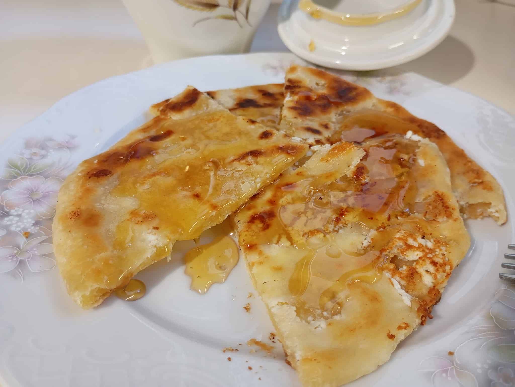 Σερβίρουμε τις ζεστές μυζηθρόπιτες με μέλι.