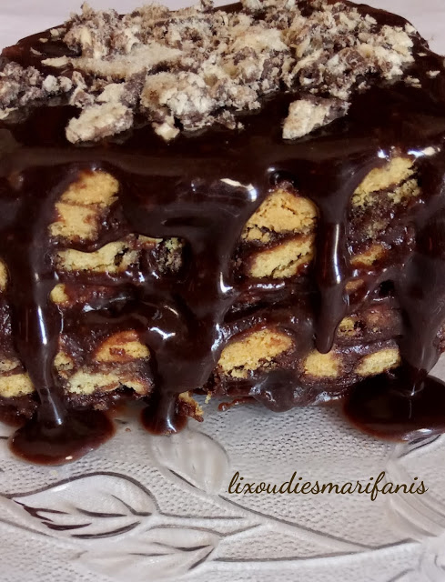 Σημ. Η χρήση των μπισκότων dijestive είναι το πρώτο μυστικό καθώς μένουν τραγανά για μέρες σε αντίθεση με τα πτι μπερ που πανιάζουν. Ο κορμός αυτός δεν λιγώνει ενώ μάλιστα δεν περιέχει πρόσθετη ζάχαρη. Στο εμπόριο υπάρχουν μπισκότα dijestive χωρίς καθόλου ζάχαρη οπότε αυτόματα το γλυκό γίνεται 100% sugar free. Κατά την παρασκευή της γκανάζ δοκιμάζουμε και διορθώνουμε τη γλυκύτητα εάν κρίνουμε απαραίτητο. Συγκεκριμένα εάν μας φαίνεται πικρή τότε προσθέτουμε ακόμη 2 κουταλάκια μέλι ή άχνη ζάχαρη (έχοντας κατά νου ότι έτσι αυτομάτως προστίθεται ζάχαρη οπότε προτιμήστε το μέλι), εάν όμως η γκανάζ γλυκίζει περισσότερο απ’ όσο θέλουμε τότε 2 κουταλάκια ακόμη κακάο. Αυτό το γλυκό ταιριάζει γάντι με παγωτό κρέμα ή γλυκό κουταλιού πορτοκάλι, νεράντζι, βύσσινο κλπ.