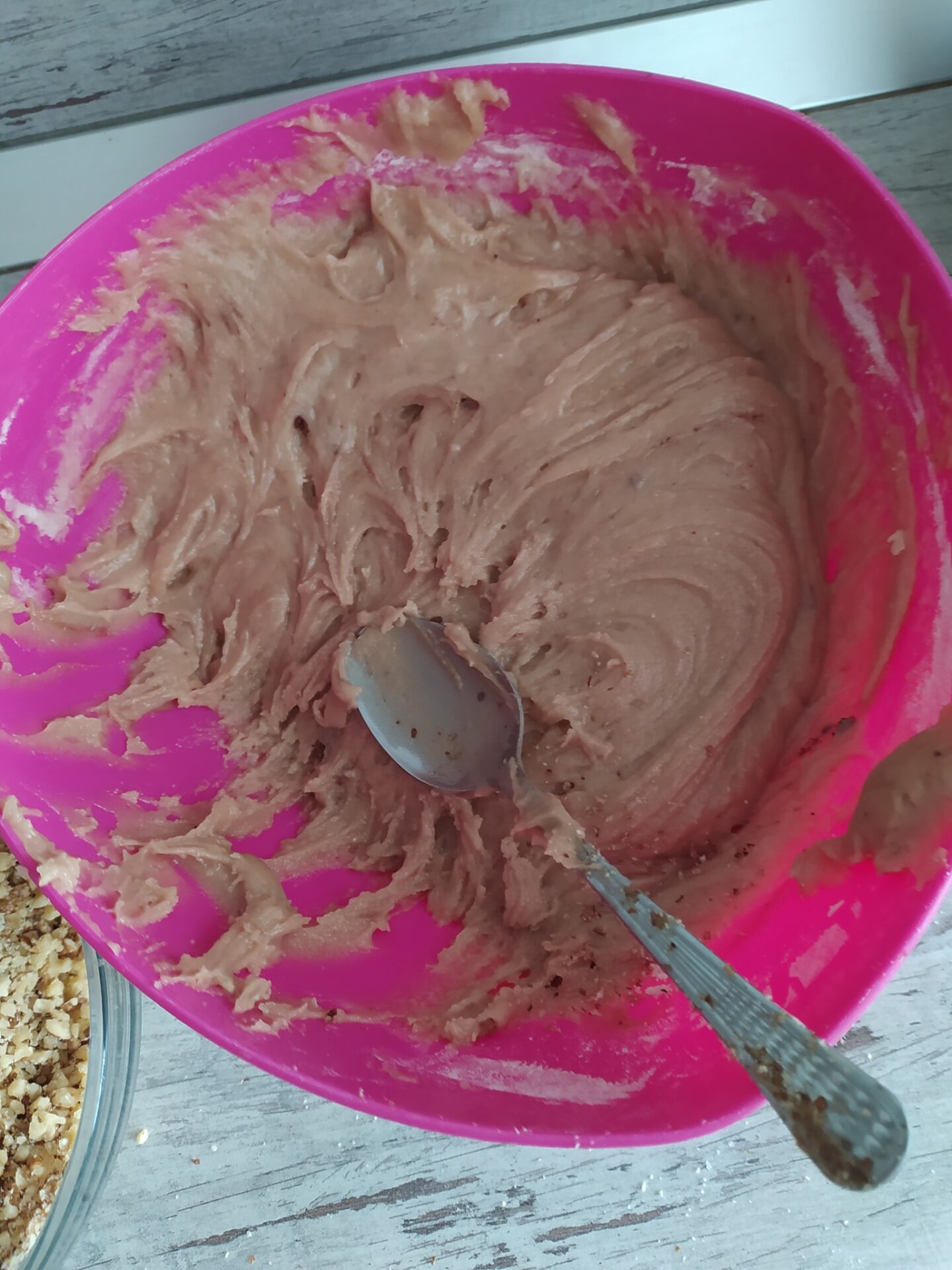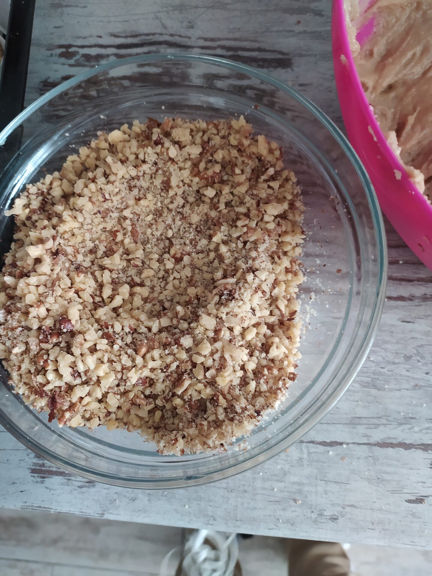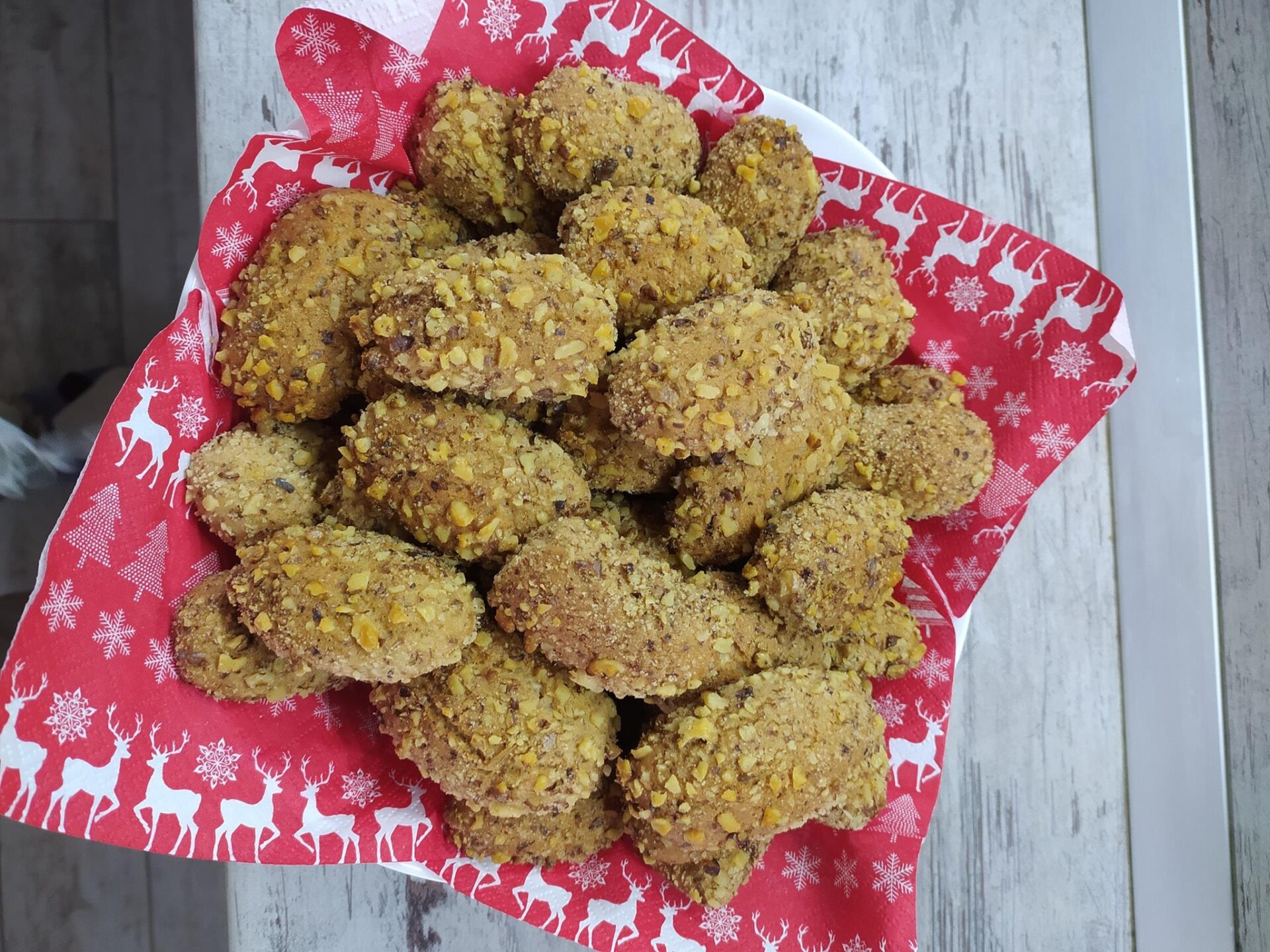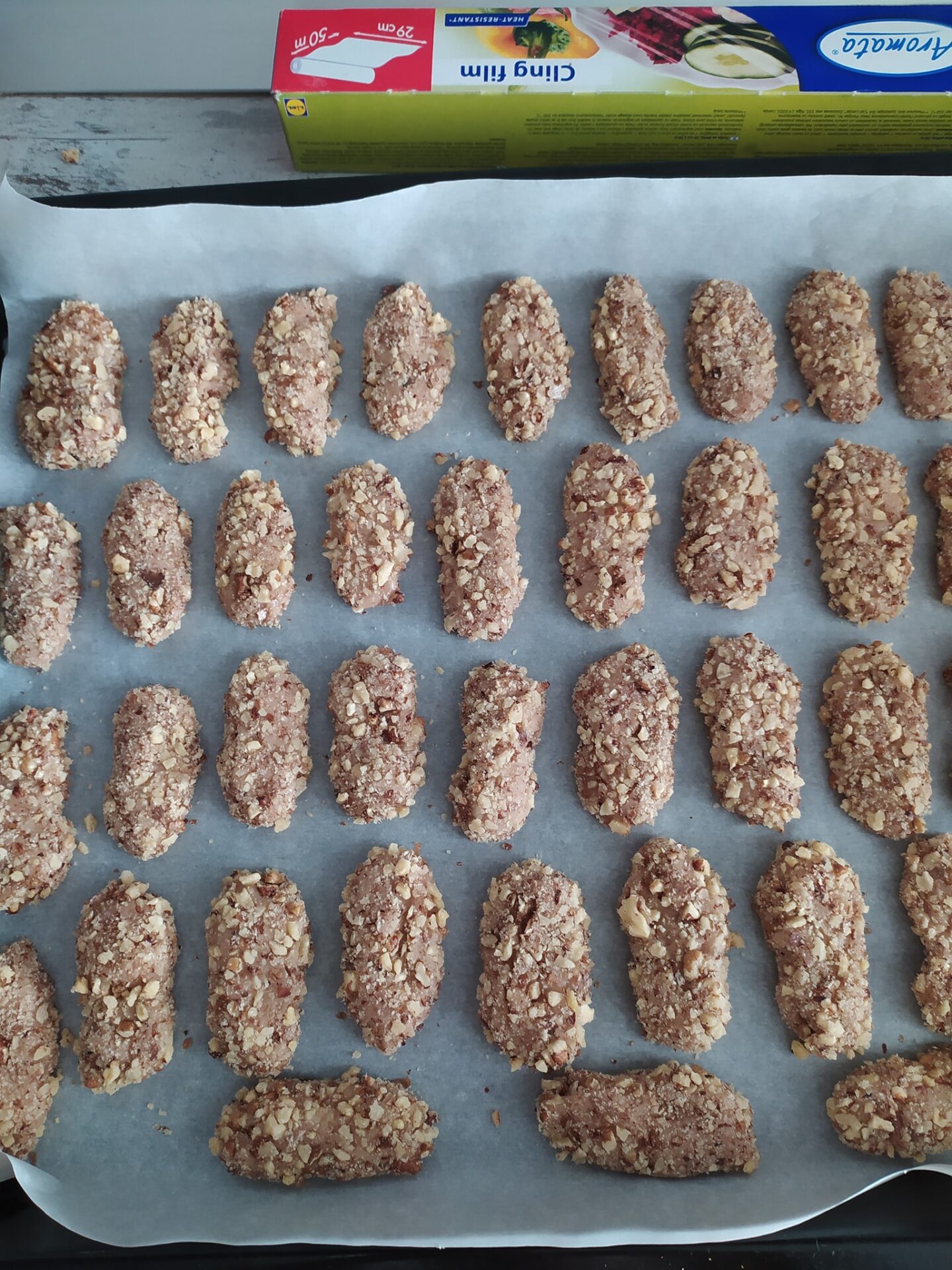 Παίρνουμε μια κουταλιά από το μείγμα το πλαθουμε σαν μελομακάρονο και αφήνουμε μέσα τα καρύδια.