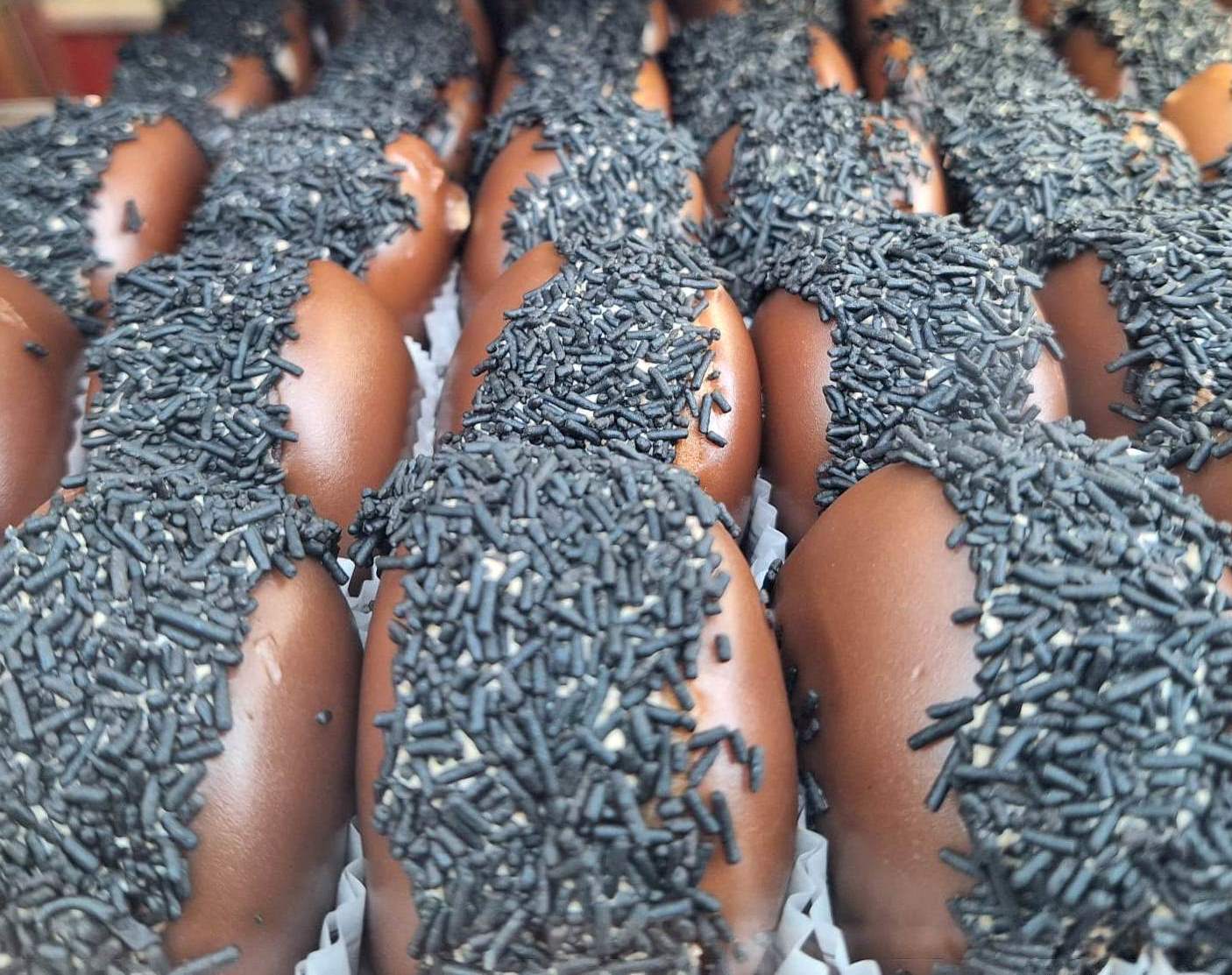 Κόβουμε με μια σακούλα ζαχαροπλαστικής με κορνέ Νο 10 σε σχήμα στρογγυλό μικρό για νεγράκια