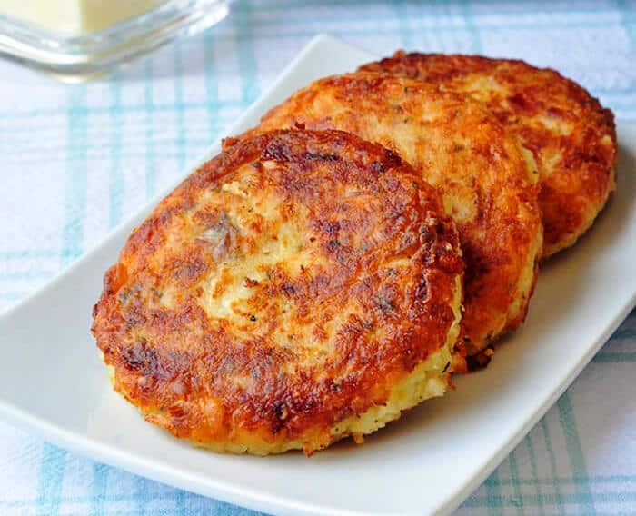 Ανακατεύουμε καλά μέχρι να συνδυαστούν καλά, στη συνέχεια σχηματίζουμε σε κεφτέδες πλακέ και τους περνάμε μέσα από το αλεύρι.