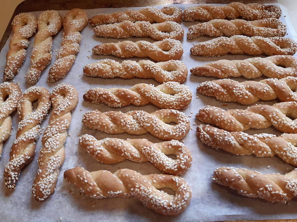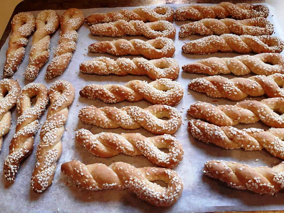 Τοποθετώ τα κουλουράκια σε ένα ταψί.