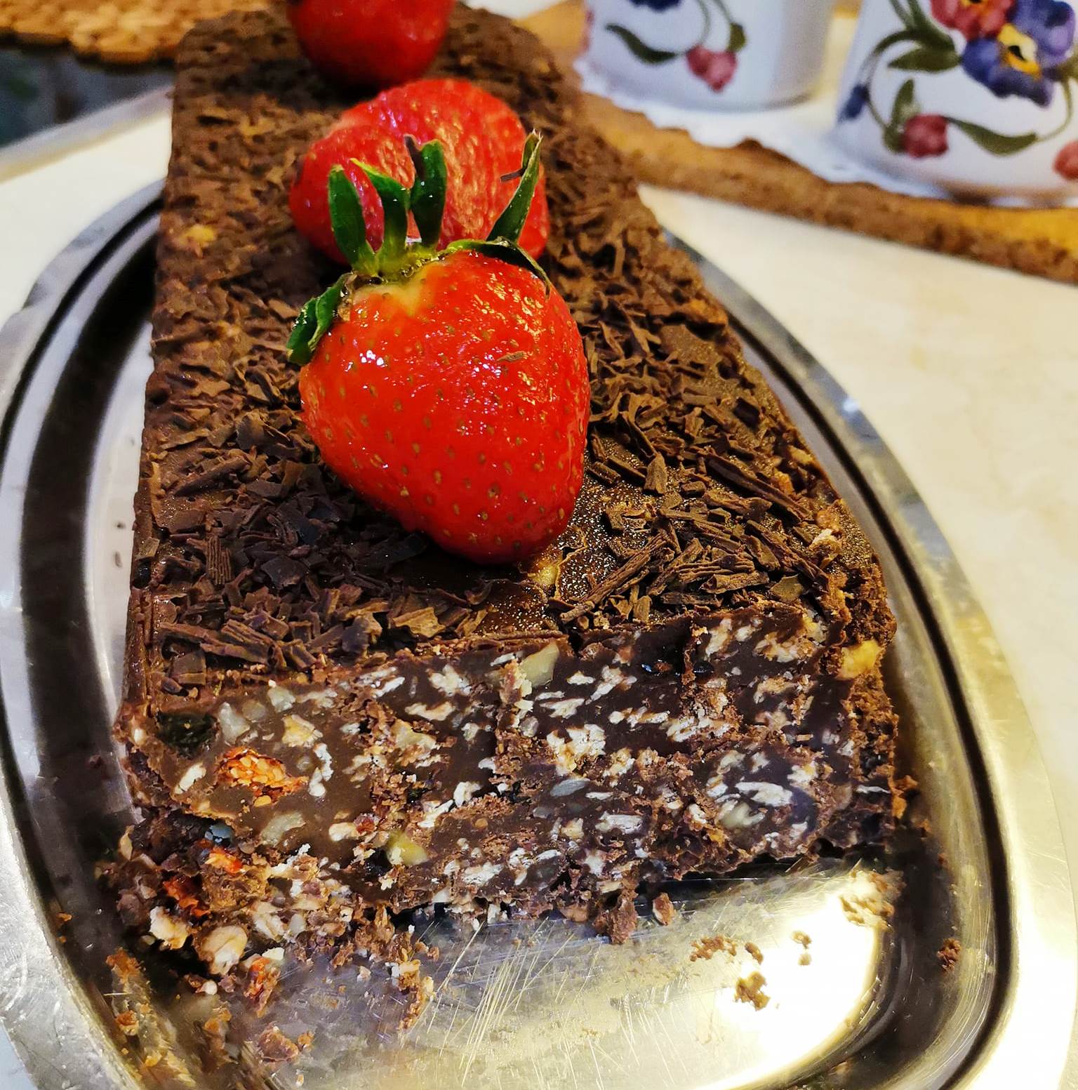 - Διακόσμηση: Μπορείς να πασπαλίσεις την επιφάνεια του κορμού με τριμμένη κουβερτούρα, τρούφα σοκολάτας ή ακόμα και με φράουλες ή άλλα φρούτα.