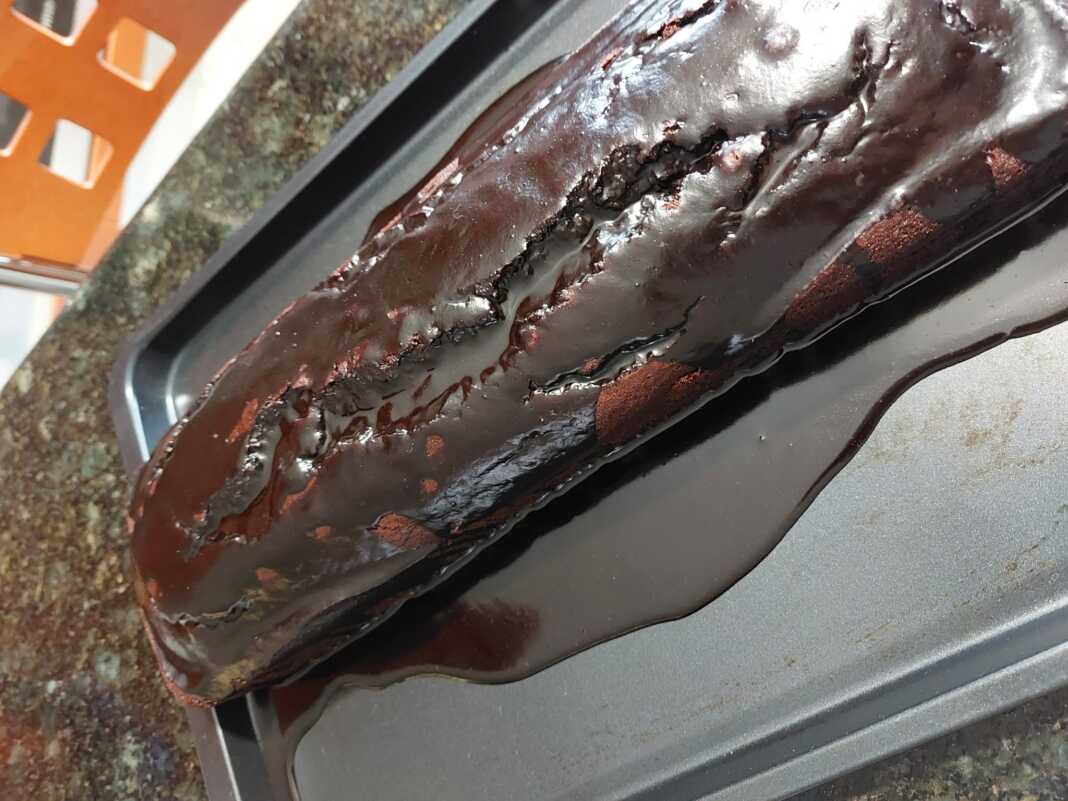 Αφού κρυώσει, προσθέτουμε το γλάσο πάνω από το κέικ και προαιρετικά πασπαλίζουμε με καρύδα.