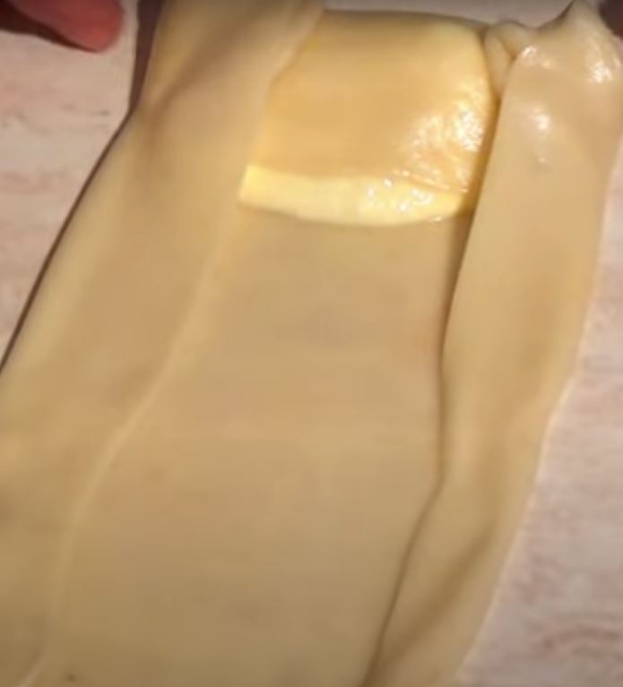Στη μία άκρη βάζουμε τη γέμιση και τυλίγουμε σε ρολό.