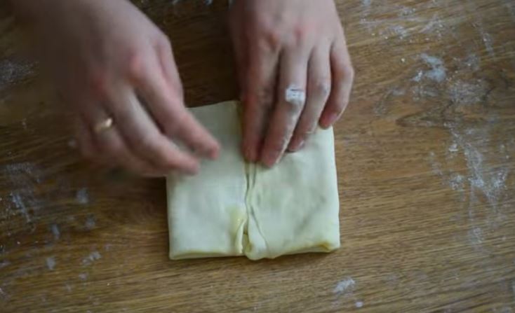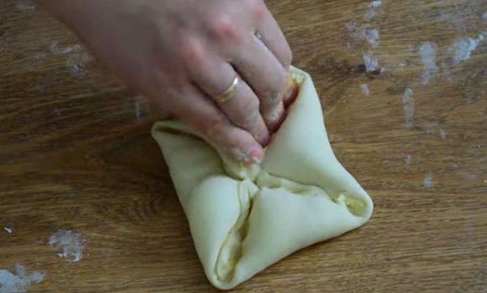 11 Βάλτε μπόλικο τριμμένο κασέρι στο κέντρο και φέρτε τις γωνίες στο κεντρο και κολλήστε πατώντας με τα δαχτυλα καλά.