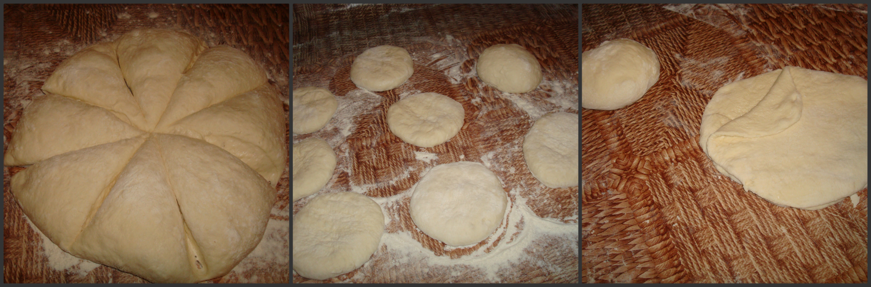 Διαχωρίζουμε τη ζύμη σε οκτώ μέρη, από κάθε μέρος κάνουμε ένα φυλλο σε μέγεθος 20cm