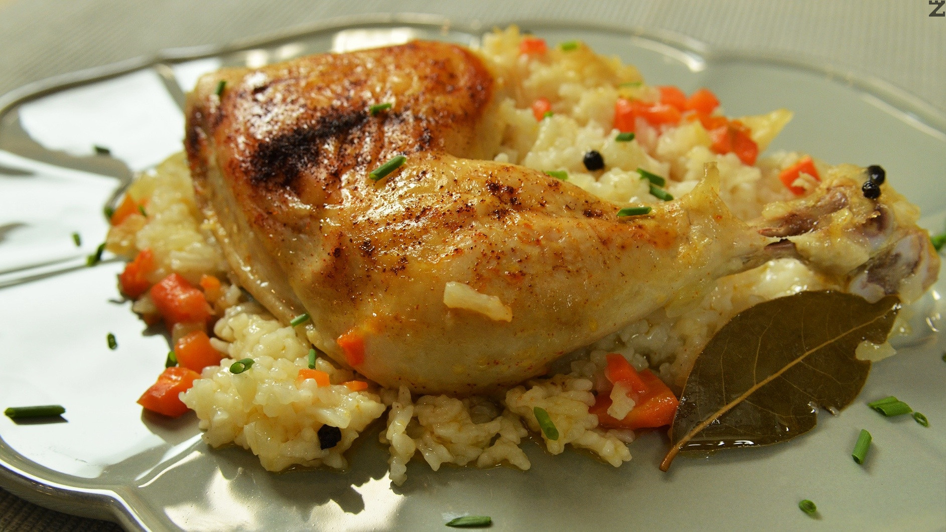 Τοποθέτησα ρύζι στα πιάτα, το οποίο έβαλα από πριν και συμπίεσα καλά σε κουπα αλειμμένη με λάδι. Έπειτα πρόσθεσα τα μπουτάκια και περιέχυσα με τη σάλτσα. Τελείωσα με ψιλοκομμένο μαϊντανό και ένα κλωνάρι θυμάρι πάνω στο ρύζι.
