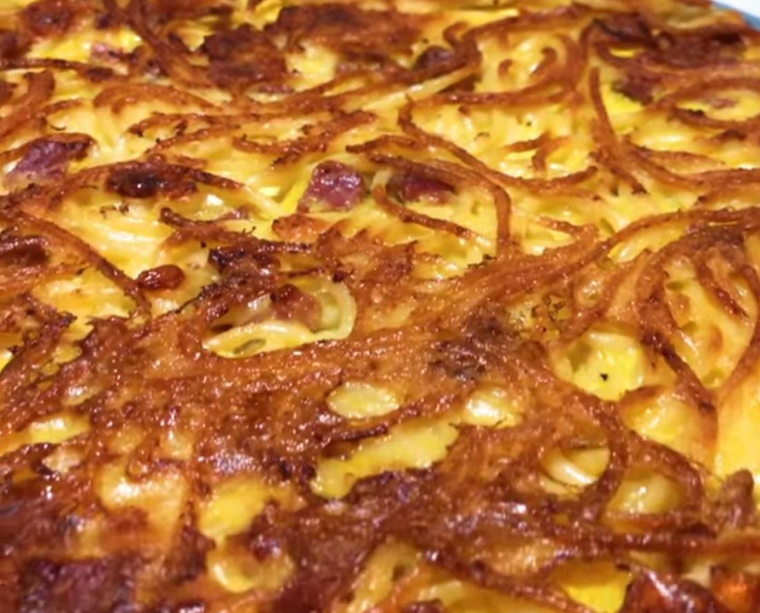 Πίτσα με Μακαρόνια στο Τηγάνι