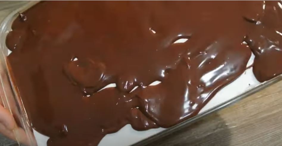 Απλώνουμε την σοκολάτα απο πάνω και την απλώνουμε.