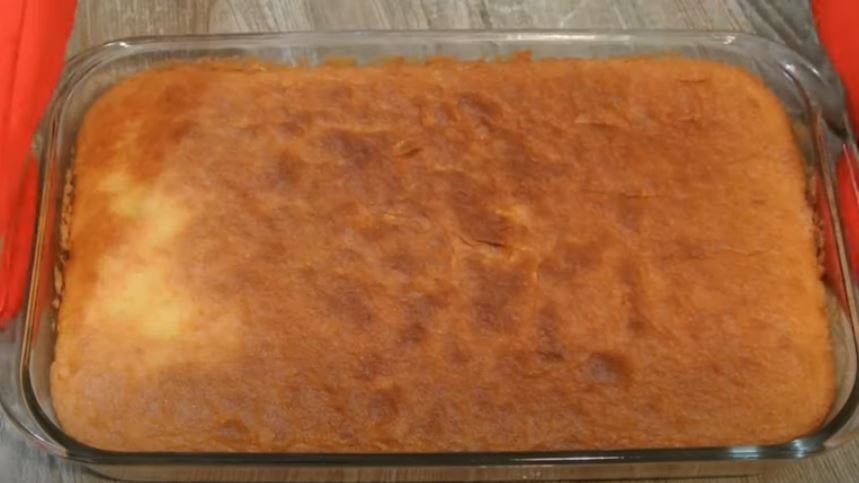 Βουτυρώνουμε ένα πυρέξ και αδειάζουμε το μείγμα και ψήνουμε στους 180 βαθμούς για 25 λεπτά. Ελέγχουμε με μία οδοντογλυφίδα εάν είναι έτοιμο.