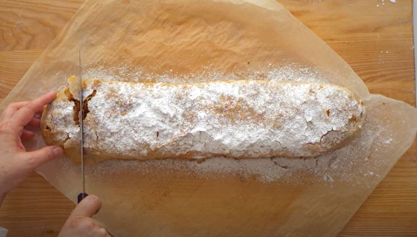 Το έτοιμο στρούντελ μπορεί να πασπαλιστεί με ζάχαρη άχνη.