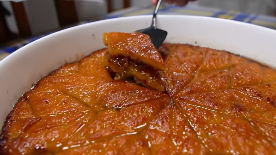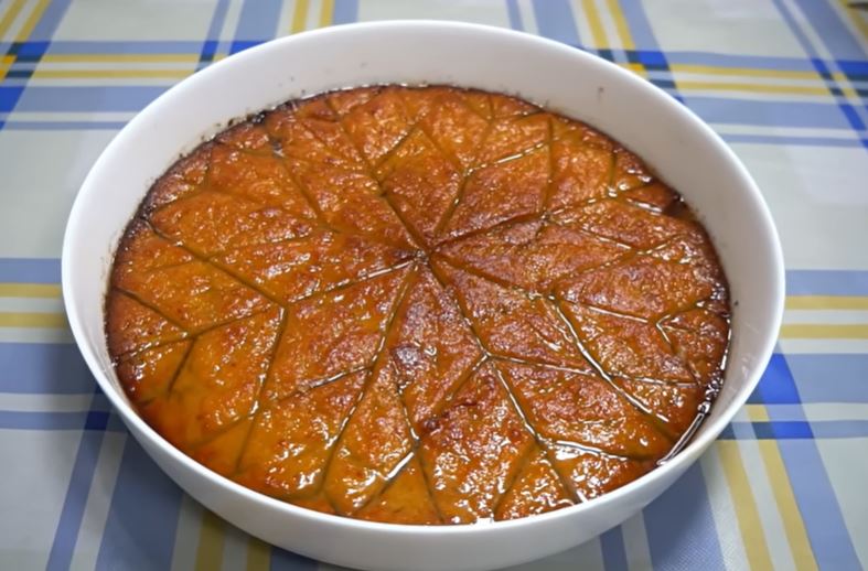 Βγάζουμε το γλυκό απ τον φούρνο και το σιροπιάζουμε σιγά σιγά με μια κουτάλα.