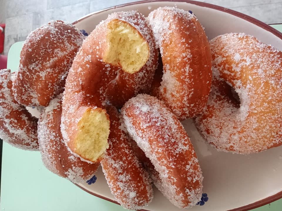 Μόλις ψηθούν όλοι οι λουκουμάδες, τους περιχύνουμε με μπόλικη κρυσταλλική ζάχαρη.