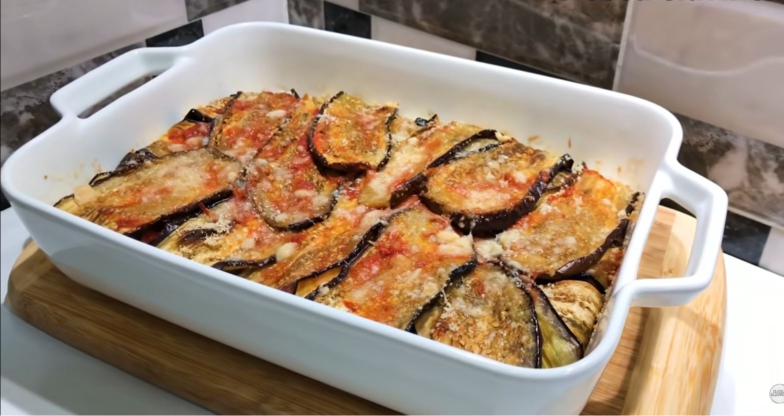 και καλύπτουμε με τις μελιτζάνες που εξείχαν απ το πυρέξ.